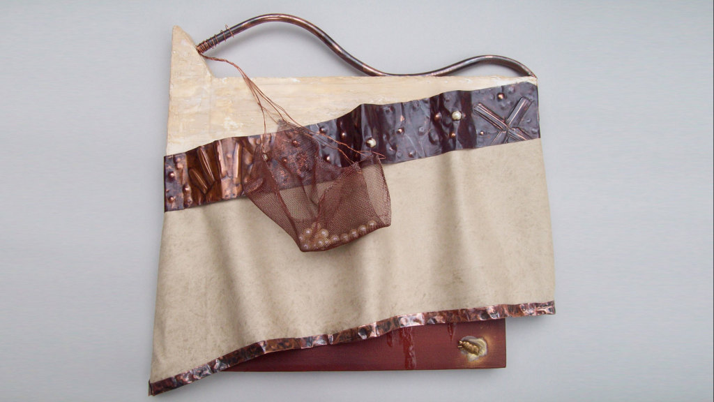 Mixed media and oil paintings explore texture, symbolism, and storytelling, blending materials like oxidized copper, wood, and acrylic with regional themes.